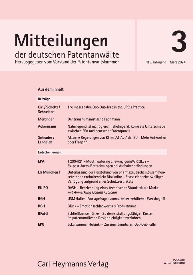 Unsere Geschäftsadresse ist: Meitinger & Partner Patentanwälte Alfred-Herrhausen-Allee 3-5 65760 EschbornWir stehen Ihnen in allen Angelegenheiten des Patent-, Marken-, Gebrauchsmuster- und Designrechts zur Verfügung. Natürlich beraten wir auch zu Fragen des Arbeitnehmererfindungsrechts.